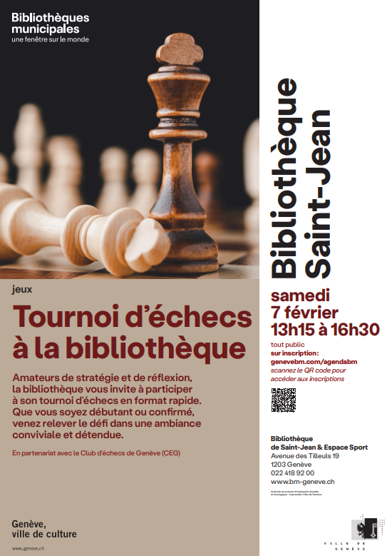 Amateurs de stratégie et de réflexion, la bibliothèque vous invite à participer à son tournoi d’échecs en format rapide. Sur inscription.