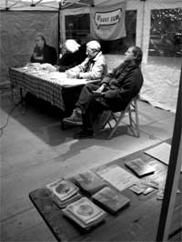 Jeudi 17 novembre 2005 à 19h30, une quarantaine de personnes ont bravé le froid pour venir au Marché Bio de St-Jean débattre sur la question des OGM dans le cadre de la votation du 27 novembre.